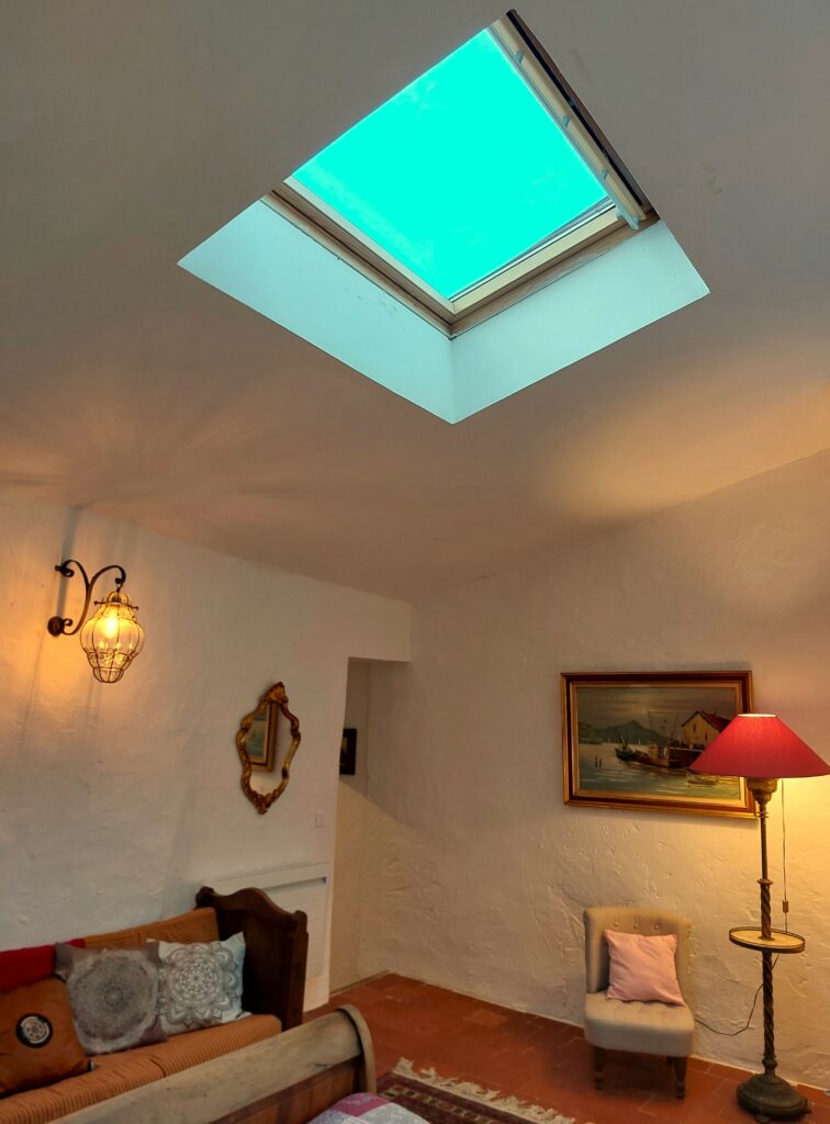vue sur le ciel par fenêtre de toit depuis votre lit