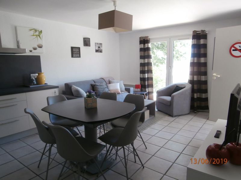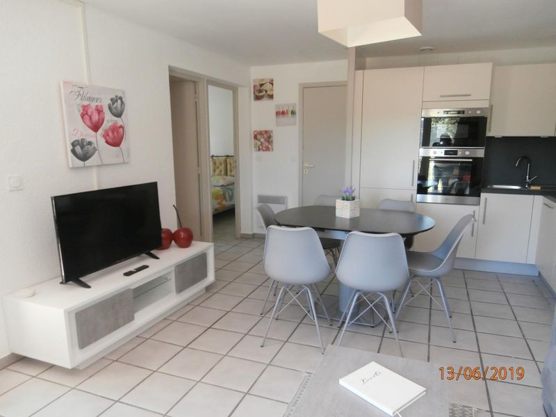 Terrasse privative, jardin clos, barbecue à gaz ,Entrée avec penderie, séjour (1 convertible 2 pers), cuisine ouverte entièrement équipée. 1 chambre (2 lits jumeaux.), 1 chambre (2 lits 1 pers.). Salle d’eau avec grande douche, wc indépendants .Parking. Chauffage électrique, cumulus. Équipements bébé/ demande, Forfait ménage de fin de séjour, linge de lit et de toilettes inclus dans le tarif, lits faits, produits d’accueil